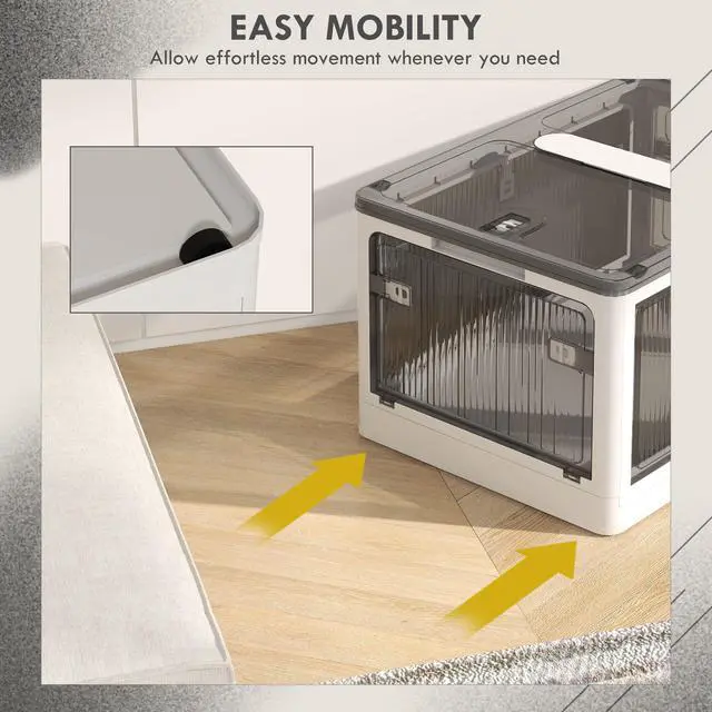 Secure Stacking & Easy Mobility: The grooved top of the folding storage bins enables seamless stacking of multiple units, ensuring stability and preventing items from toppling. Maximize your storage space by securely piling them up. Equipped with four wheels, these stackable storage bins glide smoothly across various surfaces, enabling effortless movement and repositioning.