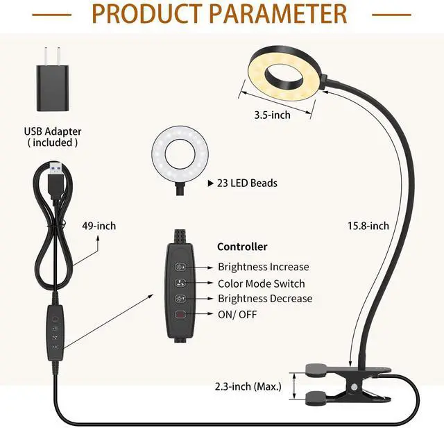 | Lamp Style | 3.5-inch Ring Light | Book Light | Desk Lamp |