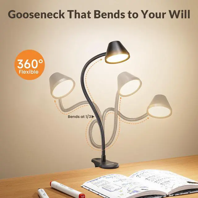 360° Gooseneck & Shark-Jaw Grip Clip on Light