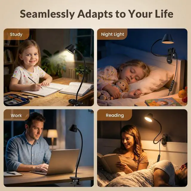 5-Color & Stepless Dimmable Reading Light for Bed
