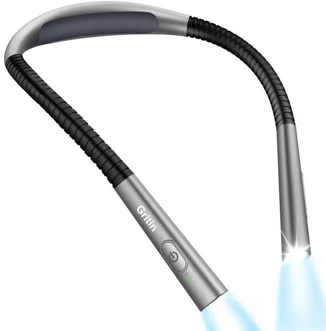 Gritin Book Light, Rechargeable Neck Light for Reading - 4-Color&5-Brightness,Bendable Arms,30-min Timer,80+ Hrs Runtime,Neck Curve Fit Ergonomic Design, Comfortable for Reading,Camping,Repairing etc.