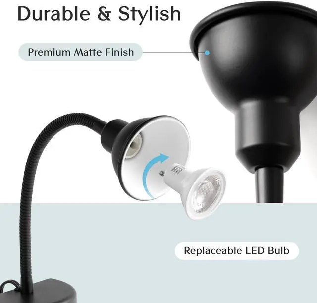 [ Movable & Flexible ] The movable design allows the light to be easily moved around the house to find the perfect location in any room. No more limitation of your reading or working place just by where your lamp is installed. The flexible gooseneck allows you to point the light directly to your reading or working area no matter where you sit or lie for the most comfortable reading.