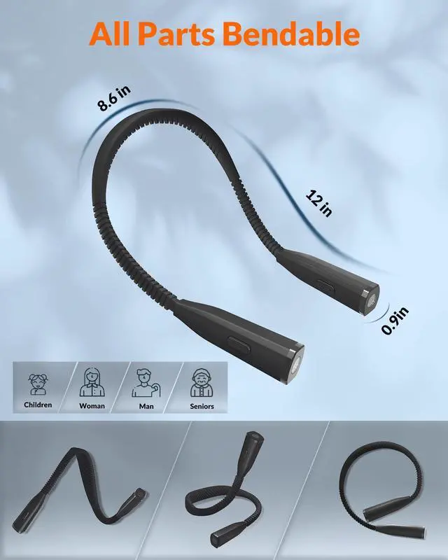 Silicone one-piece design, whether sitting or lying down, the LED neck light for reading will not get stuck in your hair embarrassingly. Gently touches the skin, enhancing the wearing experience.