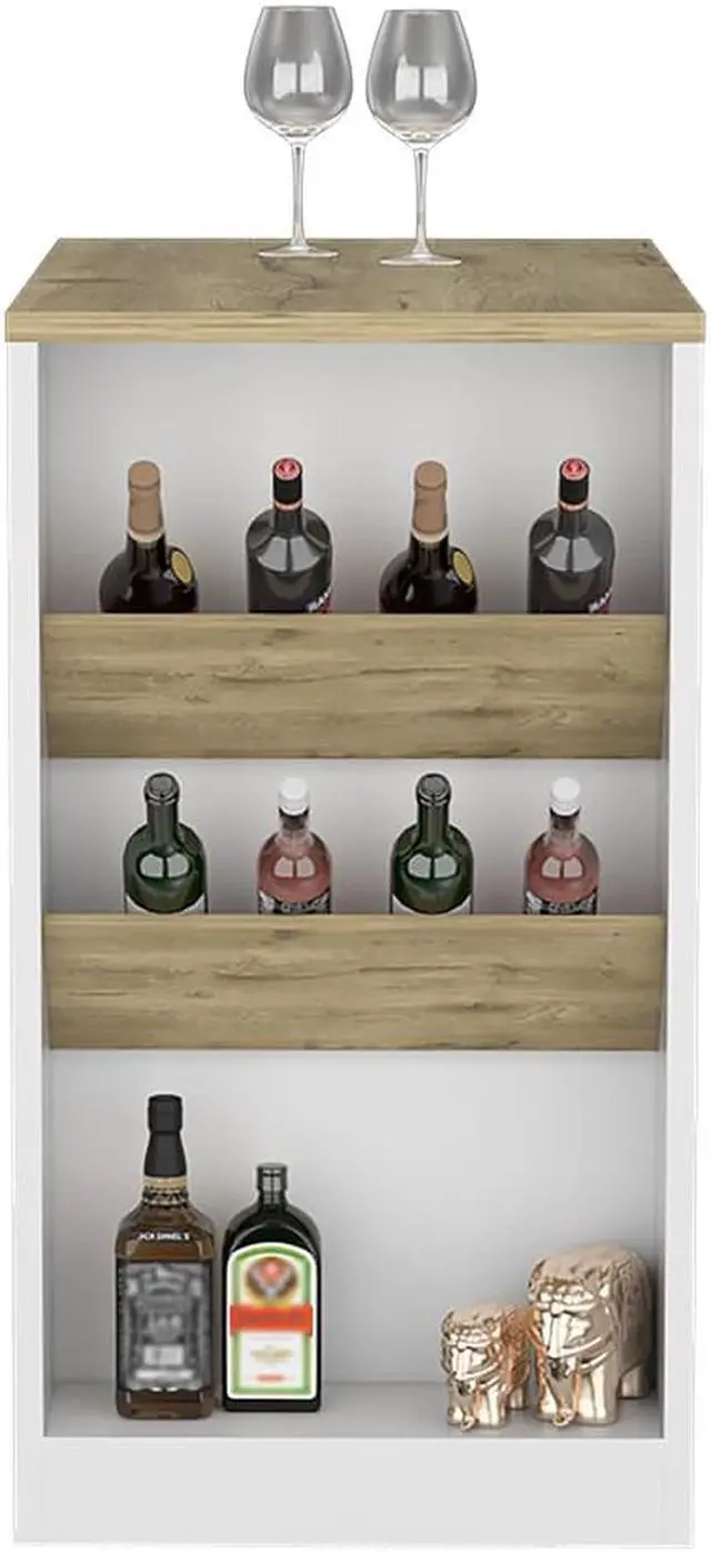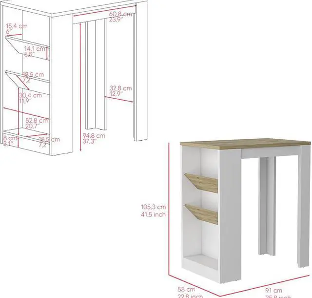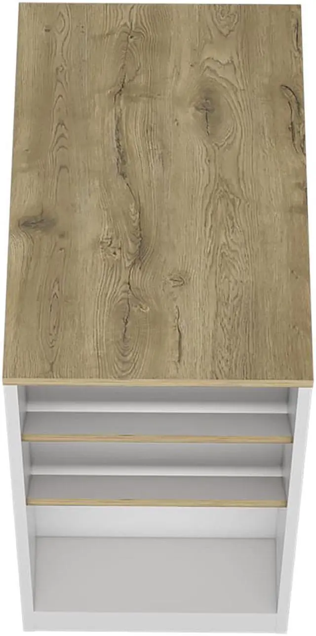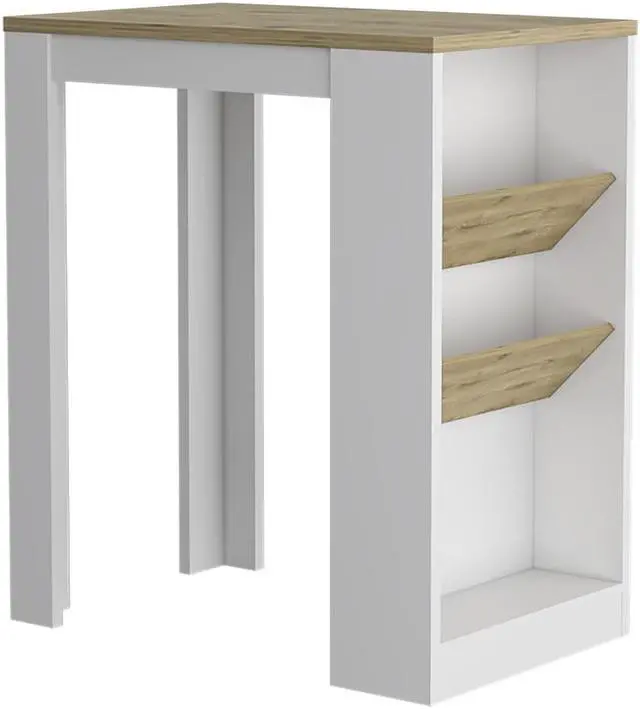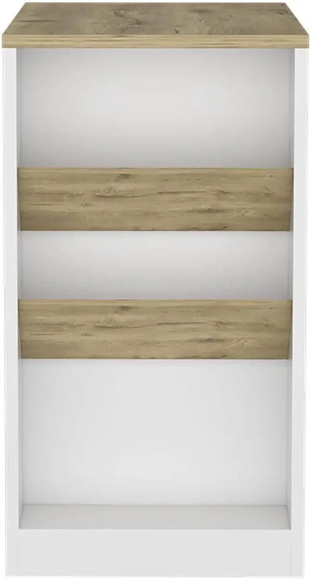 """The Kitchen Gunnes dining table. It has a countertop (Stockings); This kitchen island has modern design functionality, applicable as additional counter space for your meal preparation or a dining table where two people can share a meal, it provides you with three open shelves to store your dishes, spices, or decorative items. This fantastic product will make your kitchen unique. Designed with an elegant white/pine manufactured wood finish.