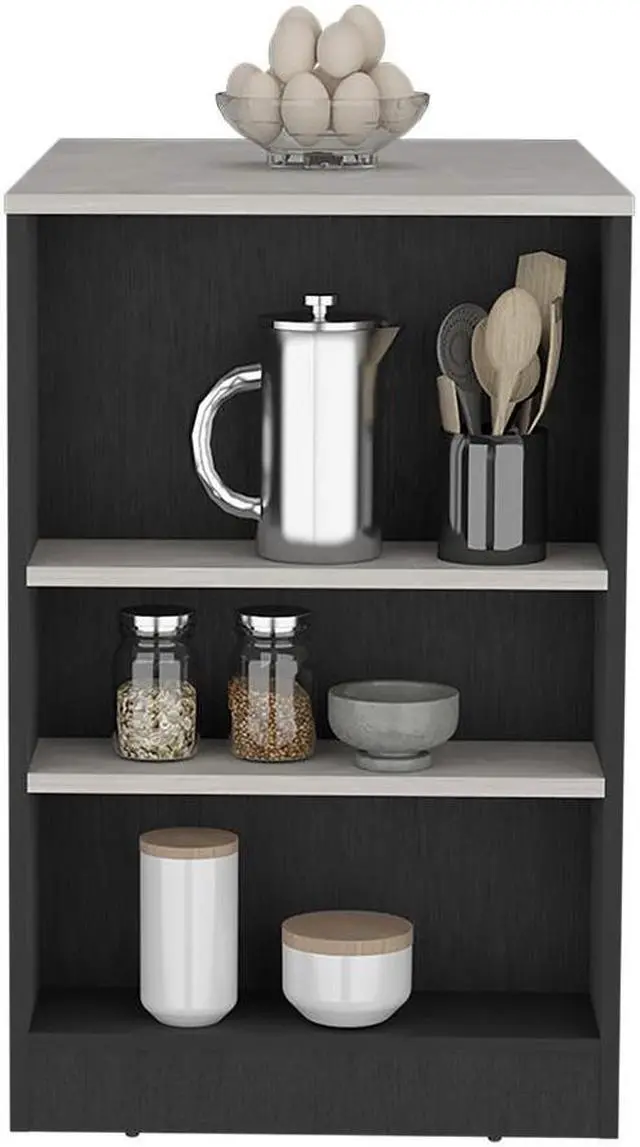 "The Doyle Kitchen Island is the perfect combination of style and functionality, designed to transform your kitchen into a chic dining space. With its elegant black/Ibiza marble finish and spacious surface, this island is the ideal spot for enjoying meals with family and friends. But it's not just a dining table - the three side shelves provide ample storage space for all your kitchen essentials and spices, ensuring that everything you need is always within reach. Whether cooking up a storm or sitting down to a delicious meal, the Doyle Kitchen Island is the ultimate kitchen companion.