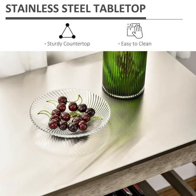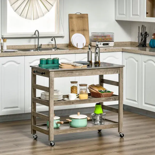 Stainless Steel Top: The stainless steel tabletop of this kitchen island cart is easy to clean and spacious enough to prepare meals on.