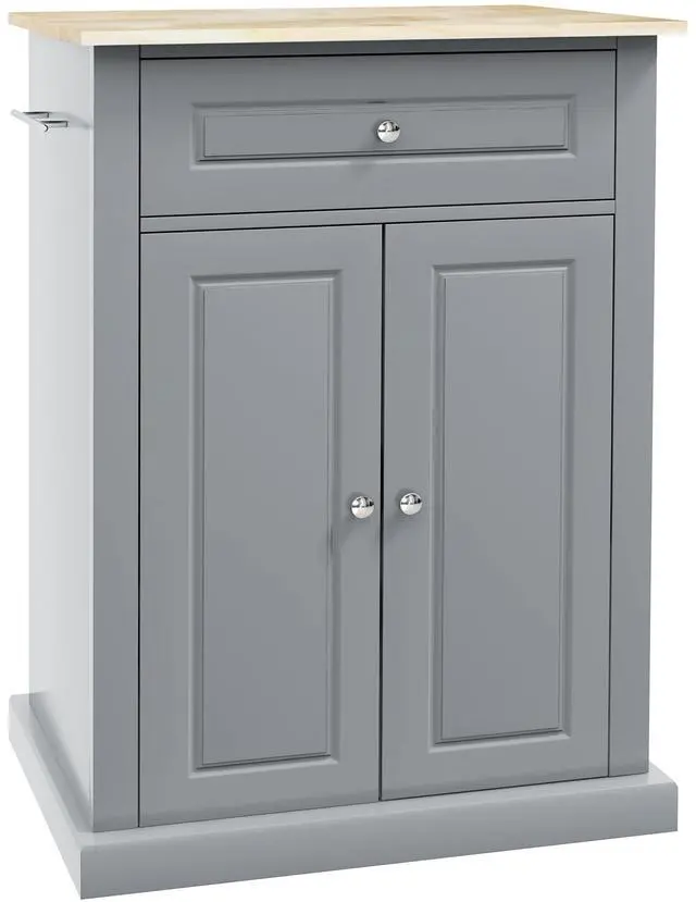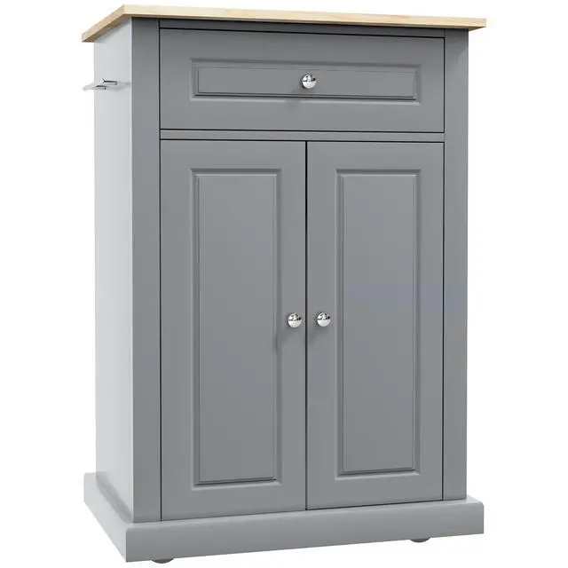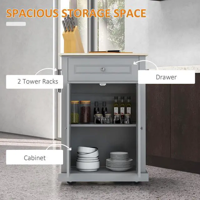• Rolling Kitchen Island Cart, Portable Serving Trolley Table with Drawer, Adjustable Shelf and 2 Towel Racks, Grey