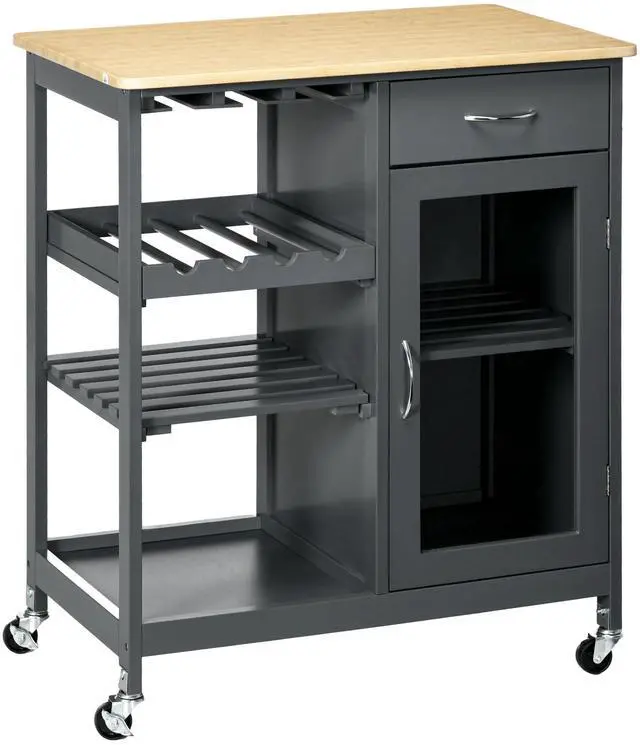Adds Natural Beauty: With a bamboo grain tabletop and popping color contrast, this kitchen cart with storage is stylish and elegant. It will blend seamlessly with your other furniture in kitchen or living room.