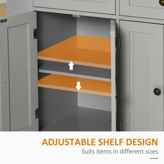 Customize Your Space: This kitchen island cart features two interior adjustable shelves. You can easily adjust the height to suit your needs, as the shelves can be locked in place at three fixed levels.