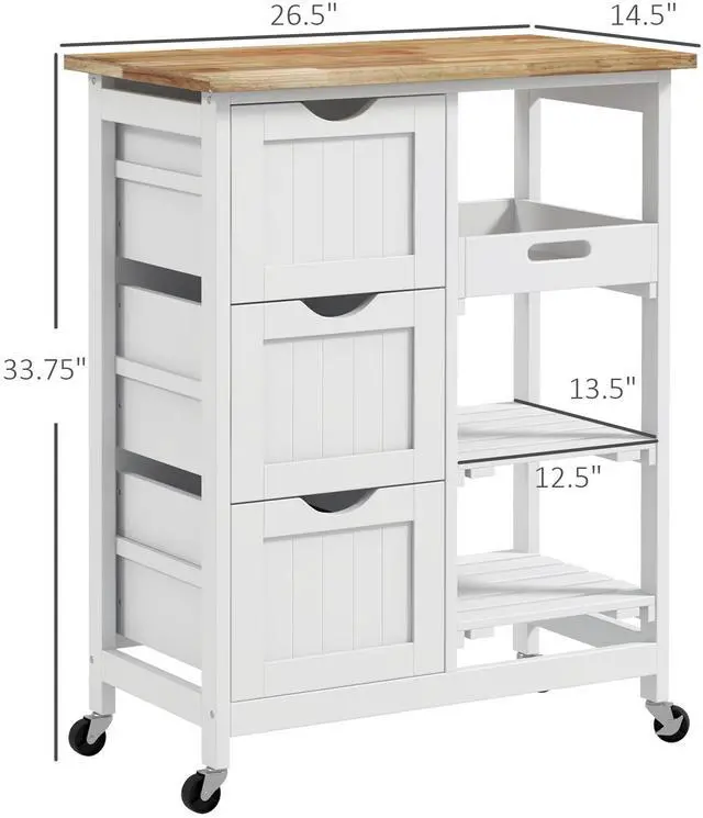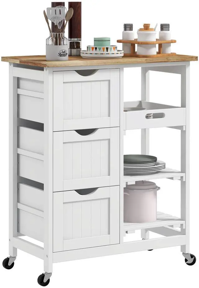 • Rolling Kitchen Island Cart, Bar Serving Cart with Drawers, White