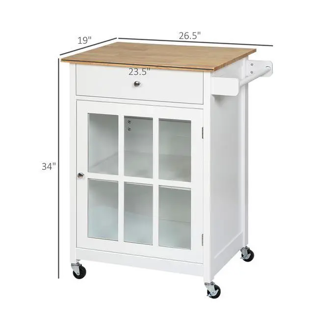 Rolling Kitchen Island Information: 26.5" W x 19" D x 34" H,