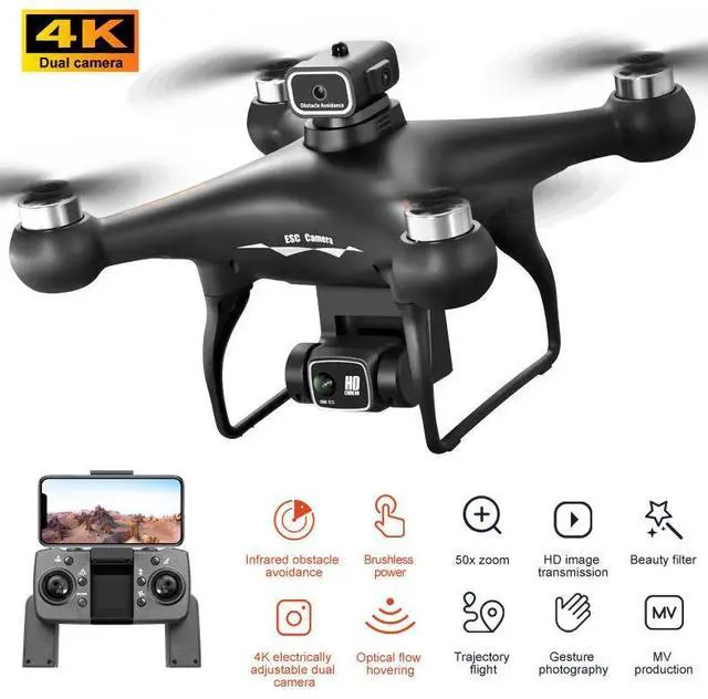 Professional 4K HD Dual-Camera System: Features dual adjustable cameras, including a main 4K Ultra HD camera for cinematic aerial footage and photos, and a secondary FPV camera for immersive first-person-view flying and navigation. Electronic Image Stabilization (EIS) ensures smooth, clear videos.