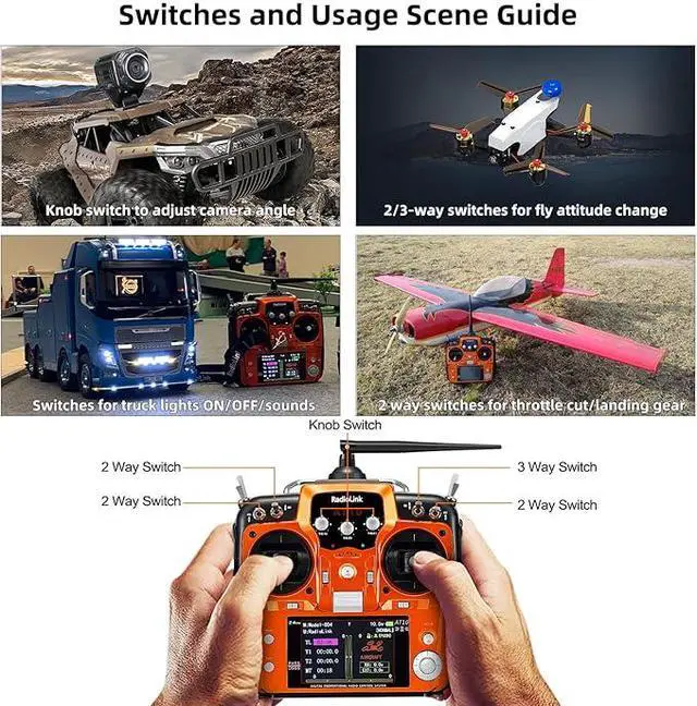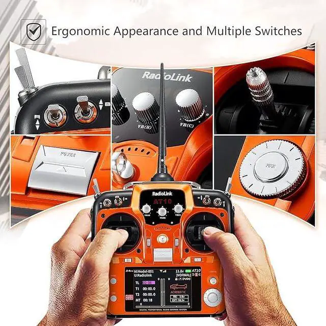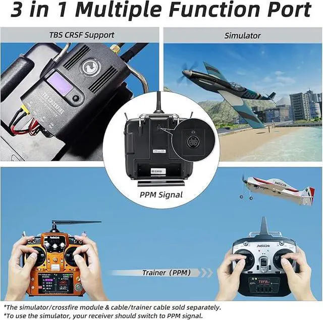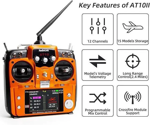 Real-time Information--Airplane voltage monitor on AT10II screen when paired with PRM-01(package included). When AT10II equip with PRM-03(sold separately) module and flight controller crossflight APM, Pixhawk, Mini Pix, to enable telemetry information on the radio's screen like battery voltage, speed, altitude, RSSI, distance, and more.