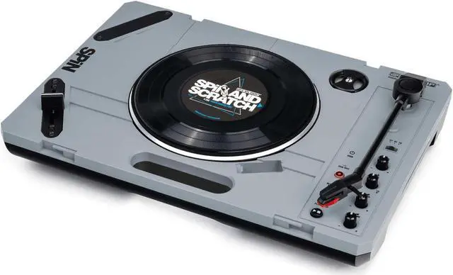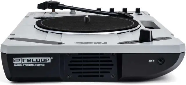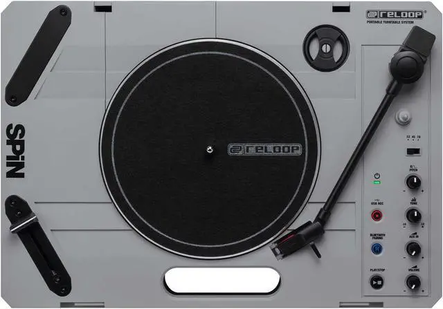 Reloop SPIN is a portable turntable that s mobile fun anywhere you want! The turntable comes with everything you need out of the box and is especially optimized for scratching and cutting. The Bluetooth Audio Streaming technology allows wireless streaming of music or beats via SPIN this way the turntable becomes a speaker for your smartphone. The USB recording function allows you to record scratches and cuts in MP3 format directly to a USB stick. This interface can also be used for digitizing records. On the turntables left panel, youll find an integrated speaker, so you can listen to your records while on the road without headphones.