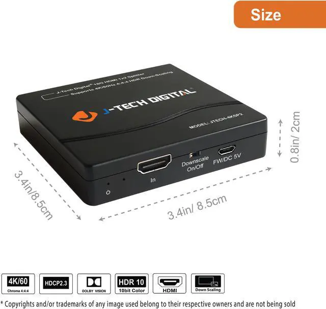 ![Alt view image 7 of 7 - J-Tech Digital HDMI 2.0 1X2 Splitter MRO Downscale 4K@60Hz 4:4:4 [JTECH-4KSP2]](https://c1.neweggimages.com/productimage/nb640/A17PD2411010EWPMT93.jpg)