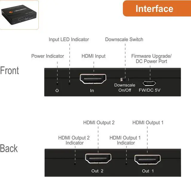 ![Alt view image 6 of 7 - J-Tech Digital HDMI 2.0 1X2 Splitter MRO Downscale 4K@60Hz 4:4:4 [JTECH-4KSP2]](https://c1.neweggimages.com/productimage/nb640/AAFFS210325EdYvI.jpg)