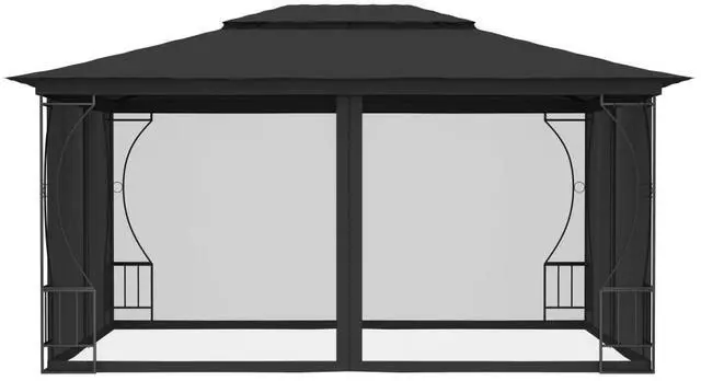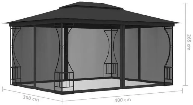 This gazebo is the perfect choice for any outdoor event, such as shows, weddings, BBQ parties, camping, and so on. It can be quickly installed in your backyard to provide a large and lovely sunshade retreat for your family and guests. This practical party tent is strong and durable thanks to its full steel frame. The protective top, together with the detachable drapes, are both made of exceptional polyester fabric with PA coating, which is UV resistant, and thus ideally suitable for outdoor use! The nets are a great addition to this gazebo, as they are pellucid, light, ventilated, have great light transmittance at days and keep out mosquitoes at night, which allows you to enjoy a peaceful time outdoors.