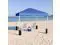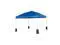 Portable shelters are an excellent way to provide shade during outdoor events and this blue all-weather 10' x 10' pop up canopy tent will help keep you out of the elements so you can enjoy your time with family and friends. The weather resistant polyester top has reinforced corners to prevent ripping or tearing and is UV coated to resist fading from the sun's rays. Simply unfold the fabric top, attach to the upper frame with the hook and loop fasteners, extend the bottom legs and pull open for instant protection. Strength and durability abound in this instant canopy. The white powder coated steel frame is rust and corrosion resistant and locks in place with a "pinch free" locking mechanism. The height adjustable frame takes you from the backyard to the beach and everywhere in between. Secure the included weight bags to the bottom legs then fill with sand (not included) to ensure maximum stability. This canopy pop up tent folds up when not in use and has its own wheeled case for easy transport and storage. This quick shade canopy includes the frame, canopy top, stabilizing ground stakes, weight bags and a wheeled storage case. Assembly takes less than 10 minutes and does not require tools. Take this portable shade canopy on camping trips, tailgating, the kids soccer games or for get togethers on your patio or in the yard. This party canopy tent will look great season after season.Product Dimension-116"W x 116"D x 102" - 106"H