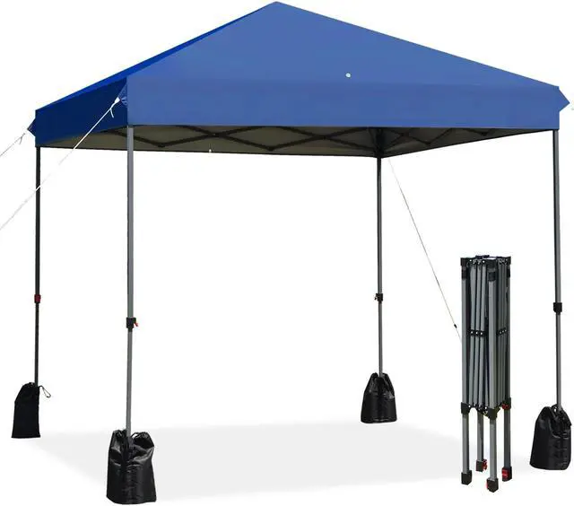 Sturdy Frame with Adjustable Height: The frame of this folding canopy is made of premium steel, which is sturdy and durable. Comes with stakes, wind ropes and large capacity sandbags, the frame of the tent will be stable in breezy days. And the height of canopy can be adjusted with three positions.