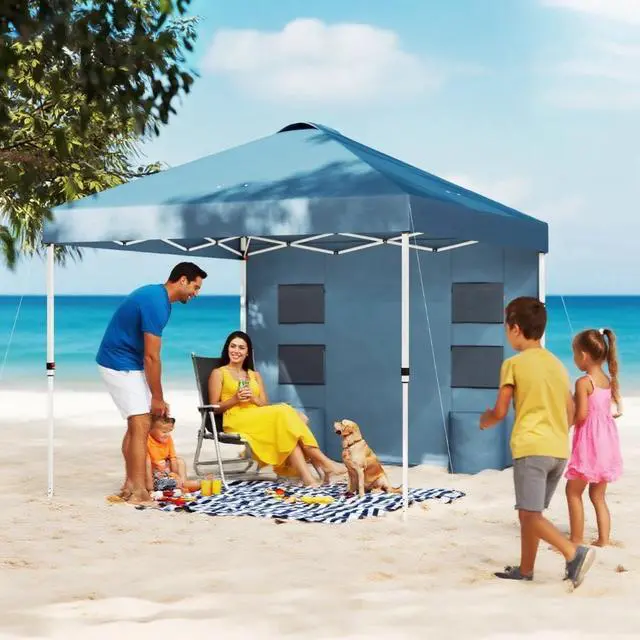 Sidewall with Storage: Enhance outdoor events with this easy-up canopy, featuring a hook-and-loop sidewall, four storage pockets, and dual trash bag holders to keep things organized. A top vent allows air to escape the canopy roof in windy conditions