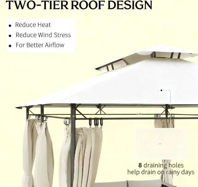 - Two-tier roof enhances steel gazebo aesthetics and improves airflow