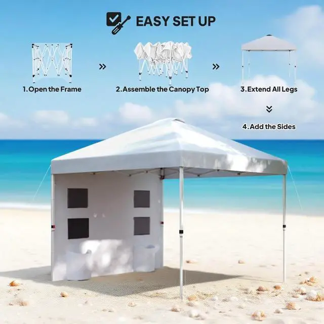 10x 10 ft party tent w/ Sidewall with Height Adjustable Instant Sun Shelter w/ Storage Pockets, White