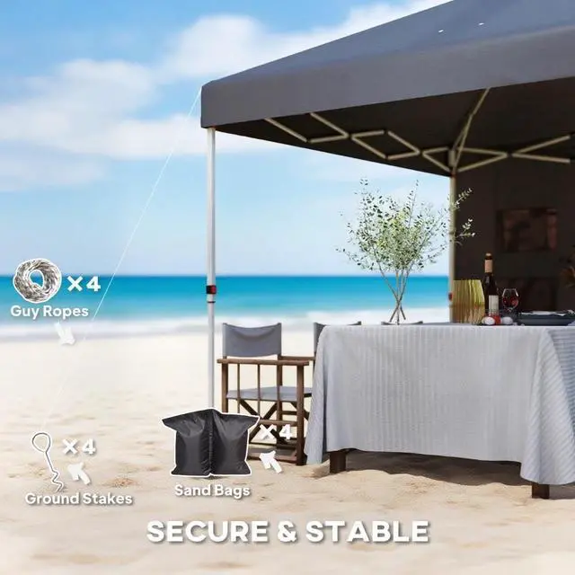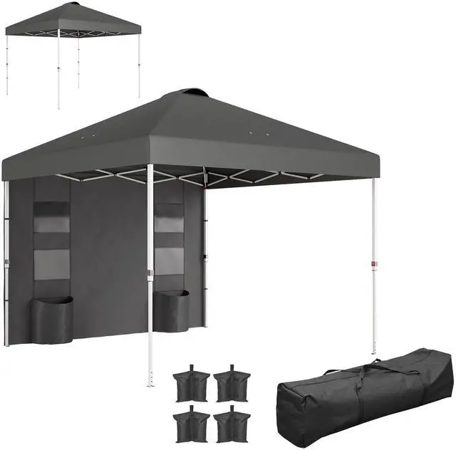 Sidewall with Storage: Enhance outdoor events with this easy-up canopy, featuring a hook-and-loop sidewall, four storage pockets, and dual trash bag holders to keep things organized. A top vent allows air to escape the canopy roof in windy conditions
