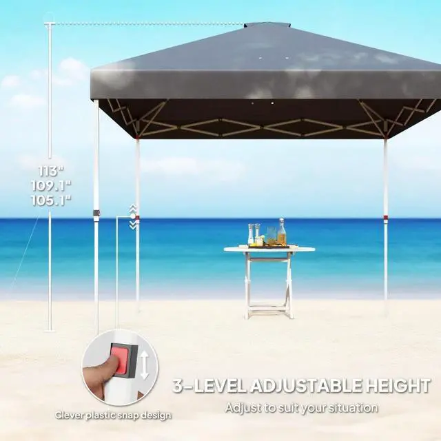 Adjustable Height: Featuring three-level adjustable strong metal legs, this shade tent allows for easy height modification (113"/ 109.1" / 105.1" ) to suit various outdoor occasions and user preferences