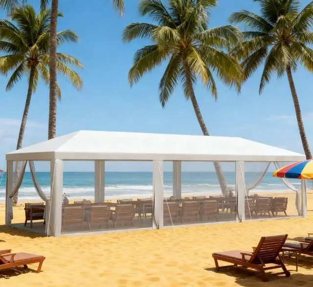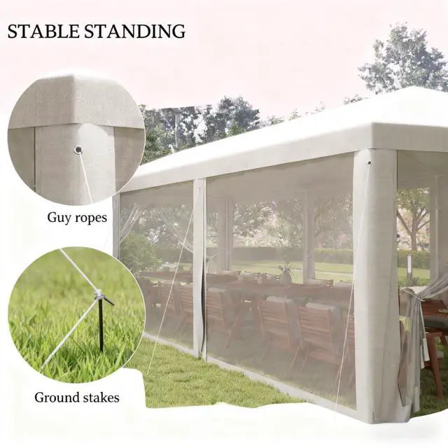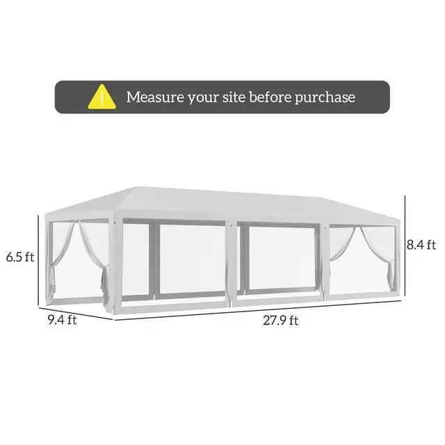 - 9.4 ' x 27.9 ' party tent offers shade outside under a cathedral-style roof