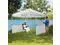 dimensions: 116.9" L x 116.9" W x 113" H, shading for 6-9 people. Comes with sandbags, guy ropes and ground stakes