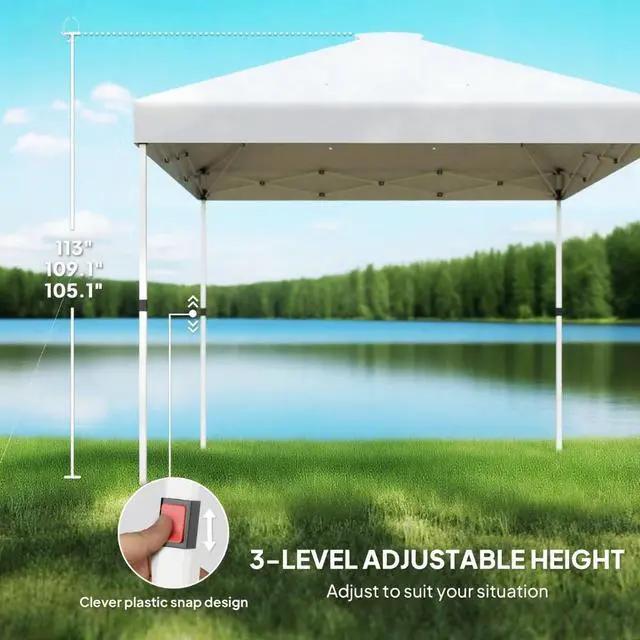 Adjustable Height: Featuring three-level adjustable strong metal legs, this shade tent allows for easy height modification (113"/ 109.1" / 105.1" ) to suit various outdoor occasions and user preferences