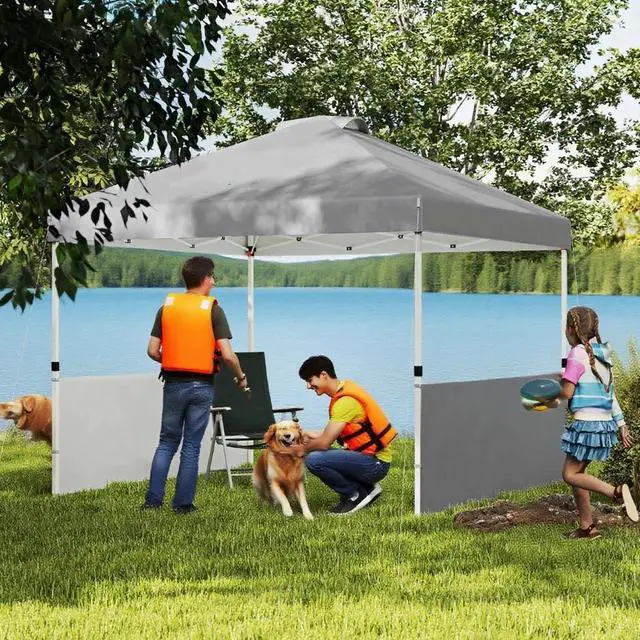 • 10x 10 ft party tent Pop Up Canopy Tent with 2 Half Sidewalls with Wheeled Carry Bag, Dark Gray