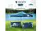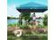 dimensions: 116.9" L x 116.9" W x 113" H, shading for 6-9 people. Comes with sandbags, guy ropes and ground stakes