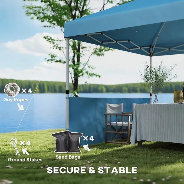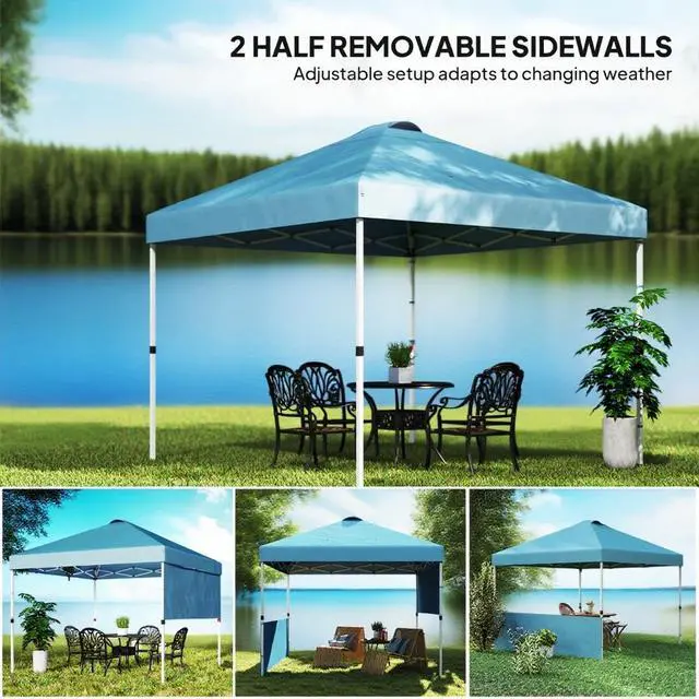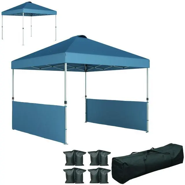 • 10x 10 ft party tent Pop Up Canopy Tent with 2 Half Sidewalls with Wheeled Carry Bag, Blue