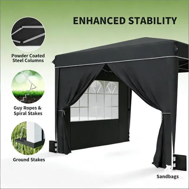 - Includes two removable sidewalls with window and zipper door for flexible layouts