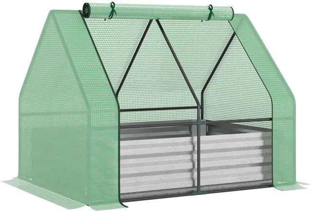 Garden Planter Greenhouse: Our garden planter greenhouse features two parts. The first is a galvanized raised garden bed you can use to raise your plants up and away from water and wild animals. The second is a greenhouse-like garden bed cover to protect your plants from frost, winter, and other intense weather. Use them separately or together for maximum protection.
