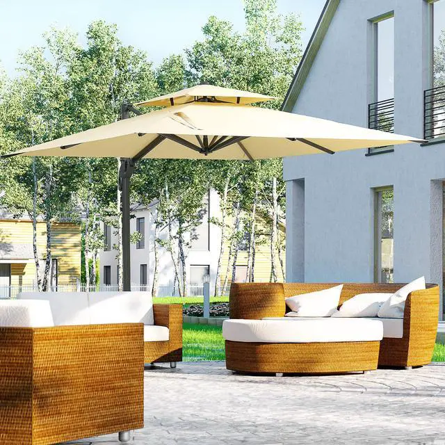 Base: Provide comfortable shade even in difficult situations. Our offset patio umbrella can cover large outdoor furniture that doesn't have a hole to mount a standard patio umbrella, and its double-top design allows airflow.
