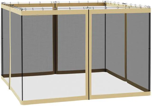Gazebo Mesh Netting Screen: This replacement gazebo netting includes four zip-on panels to protect you from winged things on your porch, patio, or other outdoor space. As a second use, it also works as an excellent solution to keep your outdoor space clear of leaves and debris. Outdoor Ready Replacement: This replacement canopy netting is made of polyester, an outdoor-ready material that stands up to wear. Gazebo Net Replacement: This patio gazebo screen mesh replacement fits most 10'x10' four-panel gazebo models. Please verify the size and model of your gazebo before purchasing