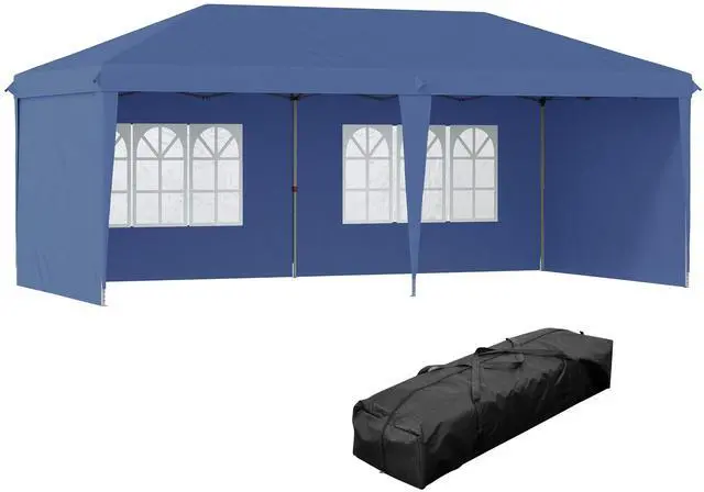 Portable Pop-Up Party Tent: Our pop-up canopy tent with sidewall offers quick setup with no tools required and a convenient way to carry it away. The carrying bag fits your car's trunk, letting you bring it on the road.