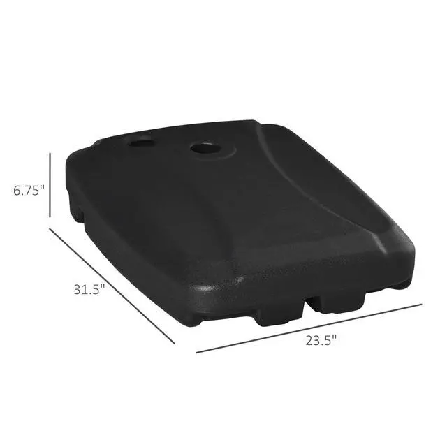 it also makes it mobile. Two wheels let you roll it where you want it making it extra easy to rearrange your outdoor space. All-Weather Outdoor Base Weights: Our umbrella stands are made of thick, waterproof HDPE to withstand weather, and aging in the sun. With a material hand selected to get the job done and do it right, they were made with outdoor in mind. Almost Universal Design: Our umbrella base is adaptable and allows you to stand up cantilever umbrellas. An excellent fit for whatever your needs, it provides a solution for patios, porches, the poolside, or any setting where you need a little shade. NOTE: This item is a base for a post and will require you to provide one. Umbrella Weight Info: Overall Dimensions: 31.5" L x 23.5" W x 6.75" H. Suitable Pole Size: 2.75'' diameter. T-shaped Cross Base Included. Assembly required. Applicable Outsunny Umbrella Poles: 84D-037, 84D-096