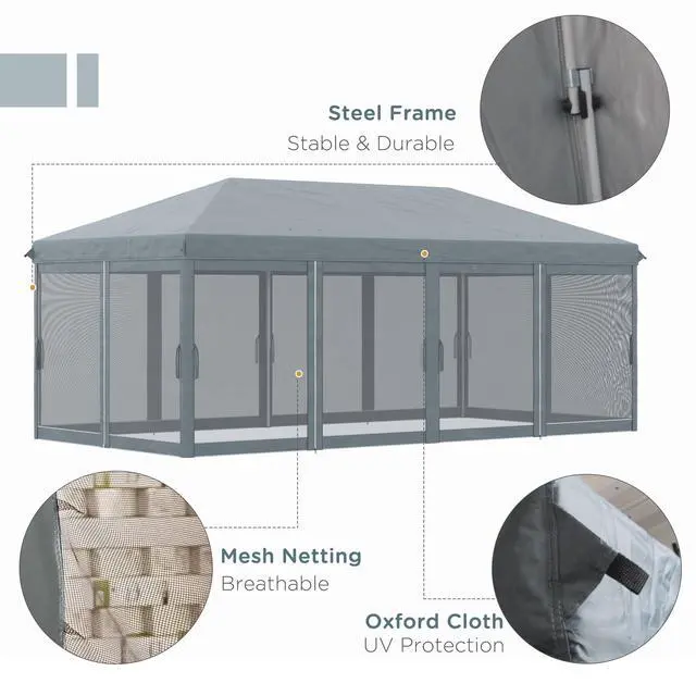 Large & Spacious: Our 10' x 20' gazebo offers 200 square feet of coverage, affording plenty of room for a crowd of 18 without making them feel crowded. A great pick for covering a sofa set, outdoor seating, a hot tub, or holding outdoor activities like corn hole.