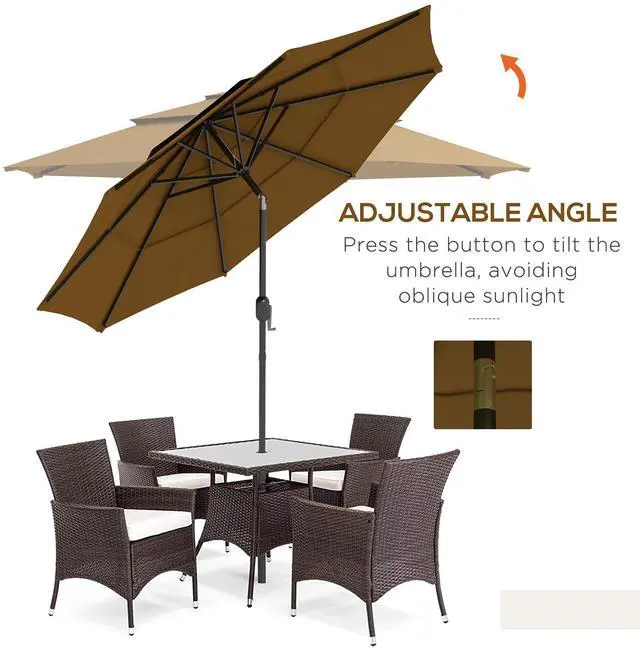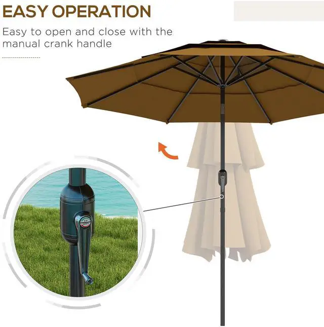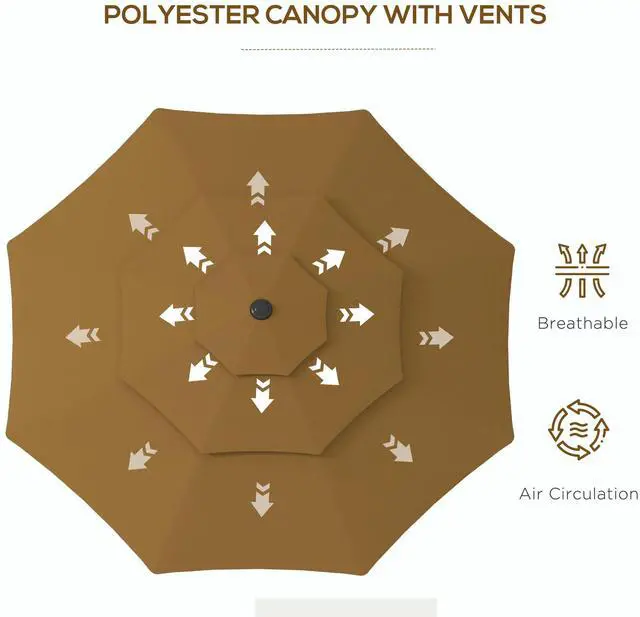 3-Tier Top with Vents: Two wind vents at the top ensure proper ventilation, allowing the outdoor table umbrella to remain secure and stable on the ground.