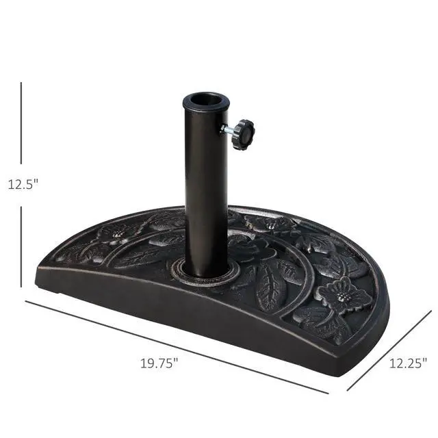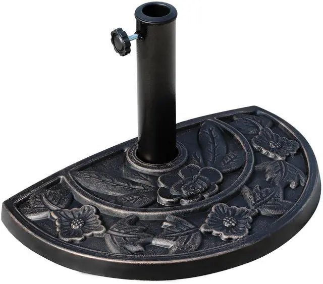 Classic Design: 20" half round umbrella base, saving space, and ornate flower design with an antique finish. A practical addition to your backyard or your patio area