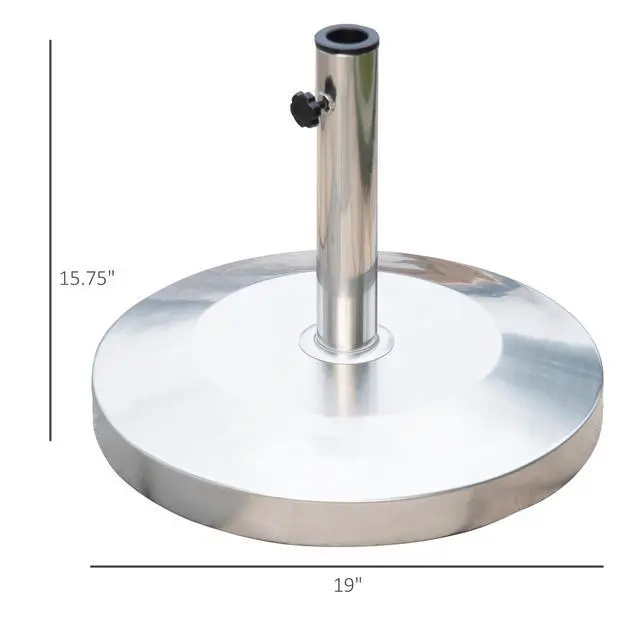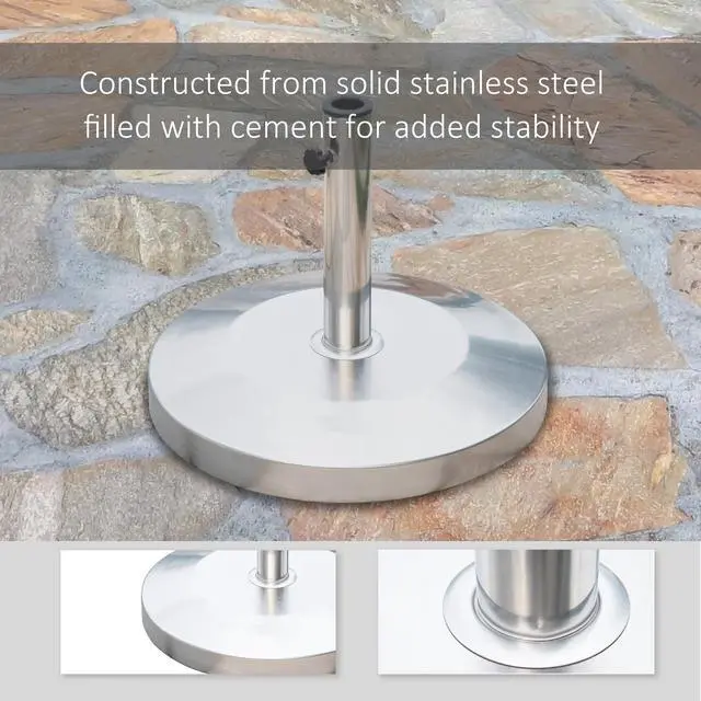 SELECTED MATERIAL: Solid stainless steel casing with cement filling and weighing 25 kg, our heavy duty umbrella stand can securely hold umbrellas to the ground