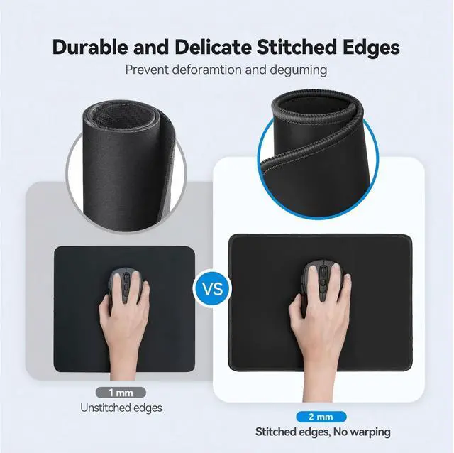 Reinforced Stitched Edges for Long-Lasting UseBuilt with tightly stitched borders, this mouse pad resists fraying, deformation, and edge peeling over time. The flat and smooth edges also offer added comfort for your wrists and hands, ensuring durability through daily use.