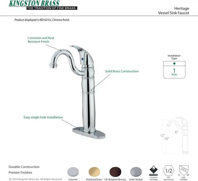 Single Handle Deck Mount, 1 Hole Sink Application, Fabricated from solid brass material for durability and reliability, Premium color finish resists tarnishing and corrosion, 180 degree Joystick type control mechanism, Single function pressure balanced cartridge, 2.2 GPM (8.3 LPM) Max at 60 PSI, Integrated removable aerator, 6-1/8 spout reach from faucet body, 12-1/4 spout height.