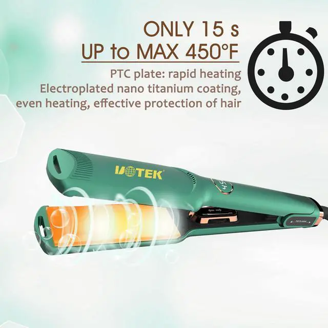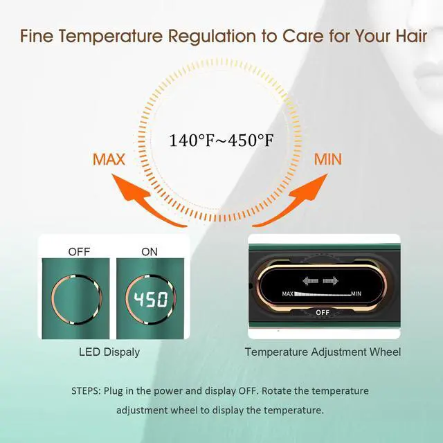 - This hair straightener with Digital LCD display and adjust temperature from 170 F to 450 F. It is suitable for all hair types, and you could choose the temperature which suits your hair directly.