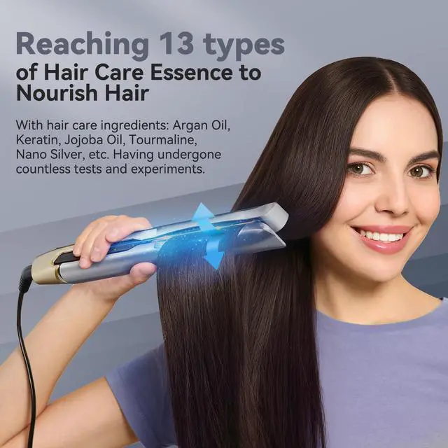 Hair Straightener, Professional Flat Iron with Hair Care, 11 Temps Settings, Dual Voltage Hair Straightener and Curler with Auto Shut-Off, Smart 3D Ceramic Floating Plates, 12s Fast Heating
