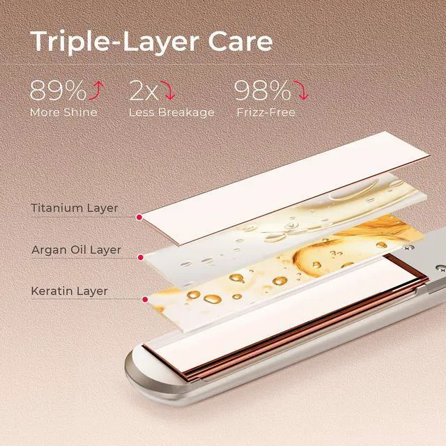 150% SMOOTHER - Featuring advanced titanium plates enriched with argan oil and keratin coating, the TYMO flat iron hair straightener delivers 150% smoother glide than ceramic plates while boosting hair health - achieving 89% More Shine, 2x Less Breakage and 98% Frizz-Free results. This innovative straightener ensures effortless styling without snagging or breakage.