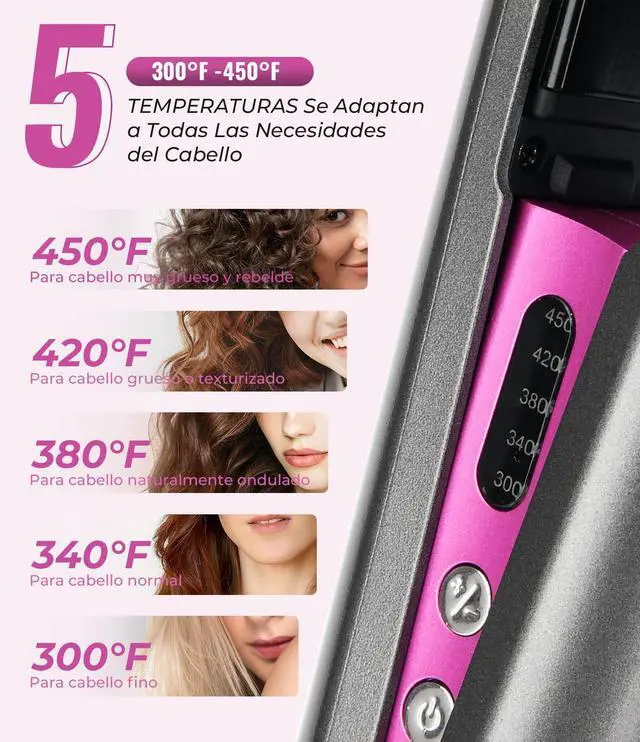 Press "+" or "-" to control the temperature from 300 ° F to 450 ° F, allowing you to enjoy salon-high heat of the hair at home.